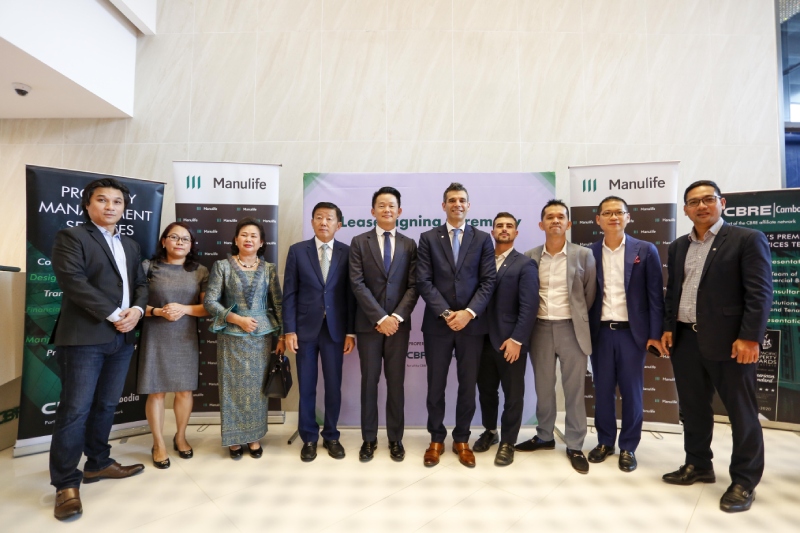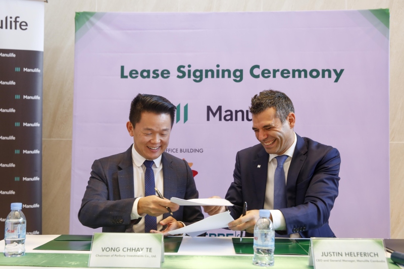 Signing a lease agreement with the new building’s developer, Parbury Investments Co., Ltd., this afternoon, Manulife Cambodia becomes the anchor tenant of the new property. It will move in before the end of the year, consolidating its head office and principal customer service center from Siri Tower and its Phnom Penh Center training facility.